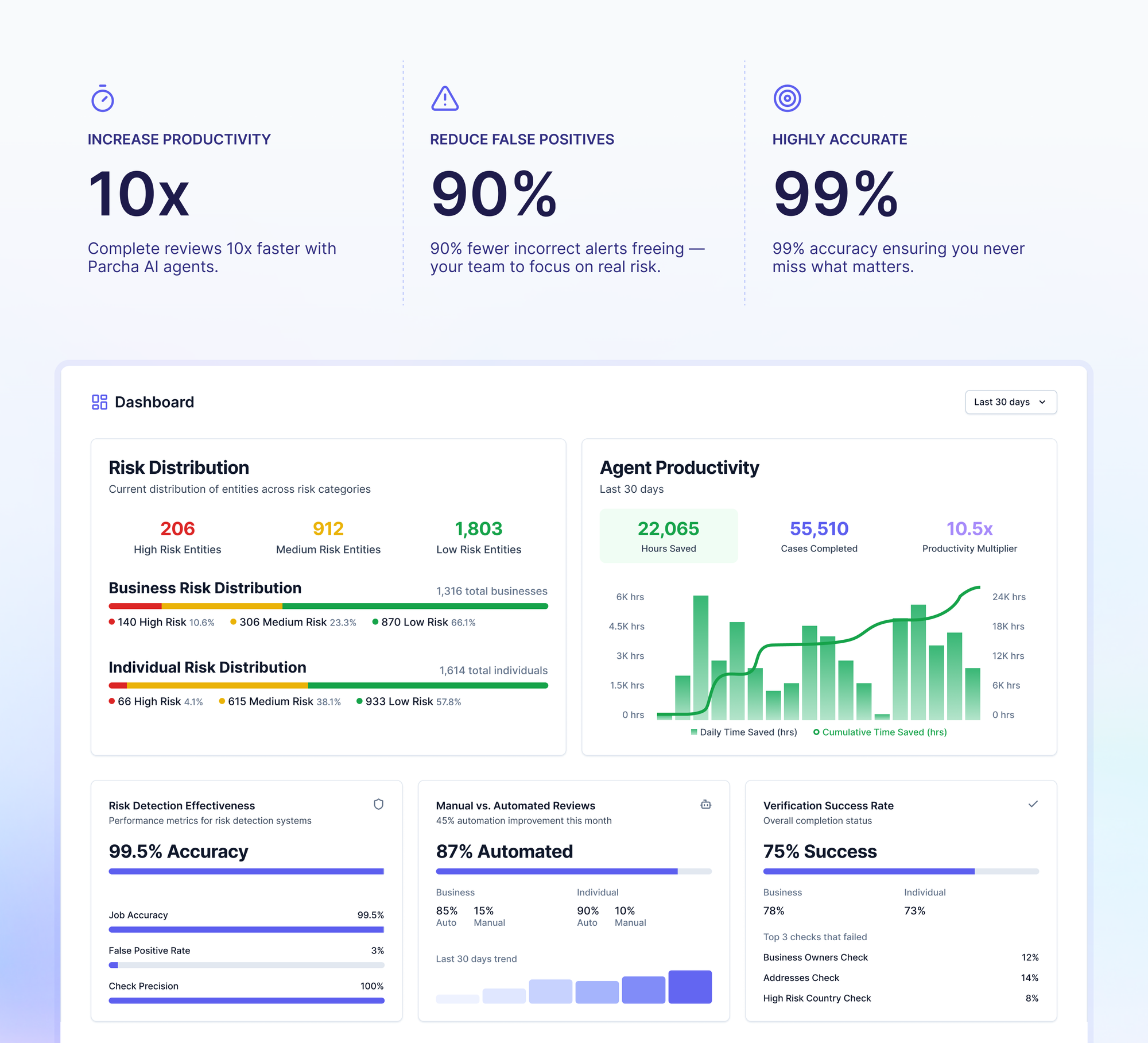Parcha's AI agents have successfully completed hundreds of thousands of compliance reviews, resolving cases up to 10 times faster, maintaining accuracy rates exceeding 99%, and reducing false-positive alerts by up to 90%.
