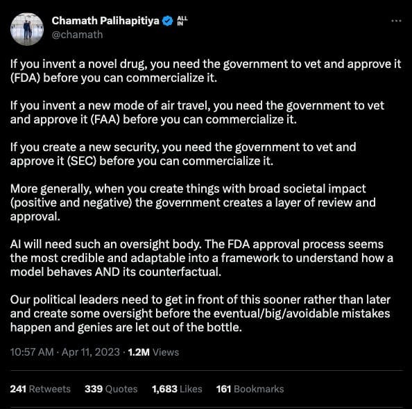 As we continue to witness rapid advances in AI research and development, systems like BabyAGI remind us of the limitless possibilities of AI and its potential to shape the future in profound ways. At the same time, with the AI space moving so quickly, there’s a legitimate fear from members of the tech community that tools like BabyAGI could be used for more harm than good. The prominent VC and All In podcast host Chamath Palihapitiya is even calling for the government to step in immediately with regulations: