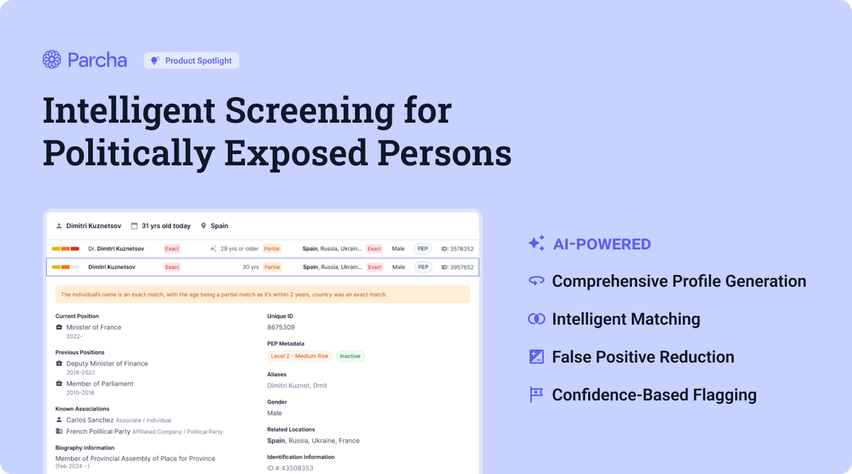 Parcha enables banks and fintechs to onboard more customers faster, with stronger compliance using AI to accelerate KYC/B reviews, document verification and AML screening.